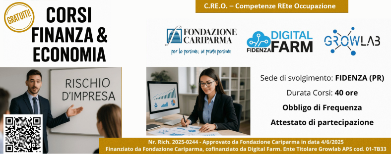 Nr. Rich. 2025-0244 - Approvato da Fondazione Cariparma in data 4/6/2025. Finanziato da Fondazione Cariparma, cofinanziato da Digital Farm. Ente Titolare Growlab APS cod. 01-TB33