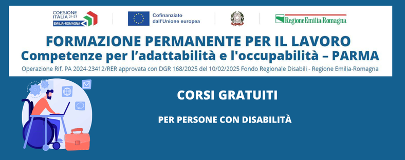 Formazione permanente per il lavoro. Competenze per l’adattabilità e l'occupabilità – Parma. Operazione Rif. PA 2024-23412/RER approvata con DGR 168/2025 del 10/02/2025 Fondo Regionale Disabili - Regione Emilia-Romagna.